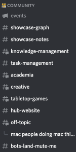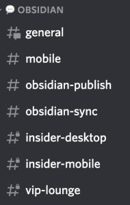 - Third, there's community channels which is basically discussions around how to use Obsidian, how to use task- or knowledge management, and so on.